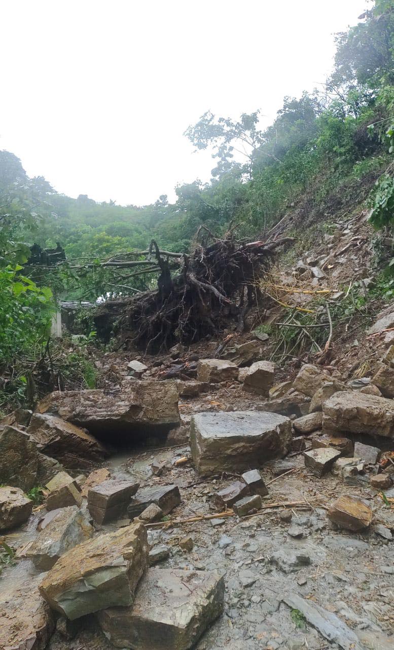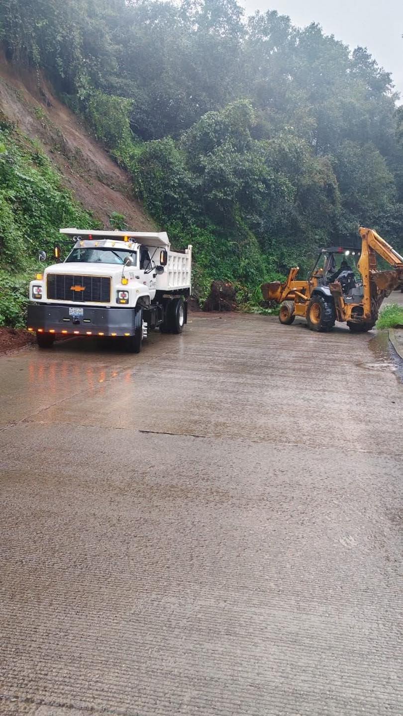 Otra afectación se encuentra en el municipio de Zacatlán, en el camino que conduce de San Felipe Tepatlán a San Martín del Progreso, debido a que se reportó un derrumbe, lo que provocó la obstrucción total de la vialidad. En el punto se trabaja con maquinaria y se realizan las labores de limpieza y retiro del material.