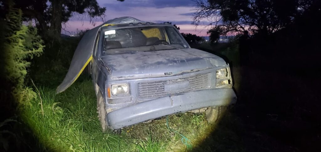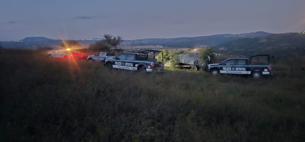 Ante ello, realizaron una revisión minuciosa por el lugar para la búsqueda de más indicios, procediendo al aseguramiento de los vehículos marca Dodge D350 y camioneta marca Chevrolet, tipo Pick-Up, las cuales cuentan con reporte de robo vigente.