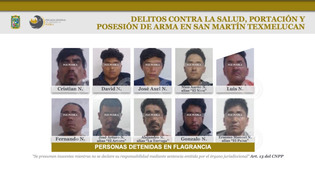 Durante un operativo coordinado entre la Fiscalía General de la República (FGR), la Fiscalía General de Puebla (FGE) y la Secretaría de Seguridad Pública (SSP), fueron detenidos 20 narcomenudistas en San Lucas Atoyatenco, perteneciente al.municipio de San Martín Texmelucan.