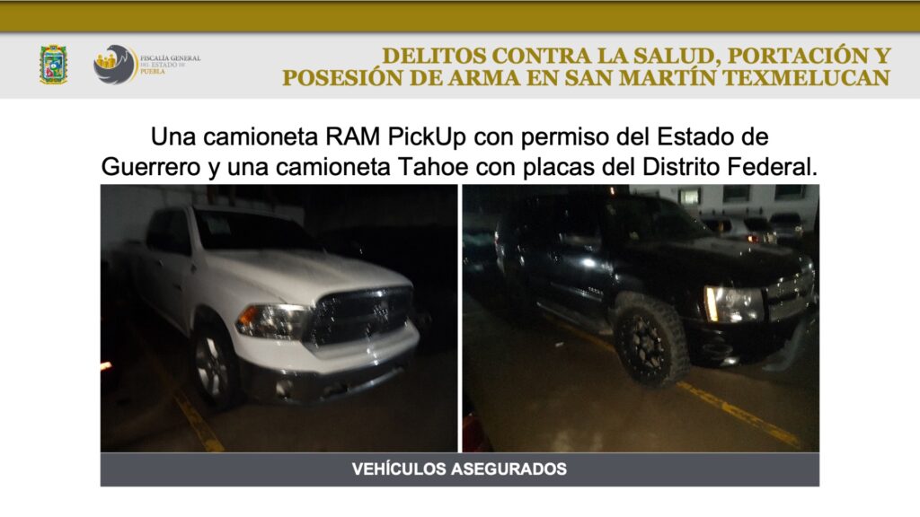 De acuerdo con el reporte de la FGE, además de narcóticos, se aseguraron 2 camionetas, cartuchos y armas de fuego relacionadas con hechos de homicidio.
