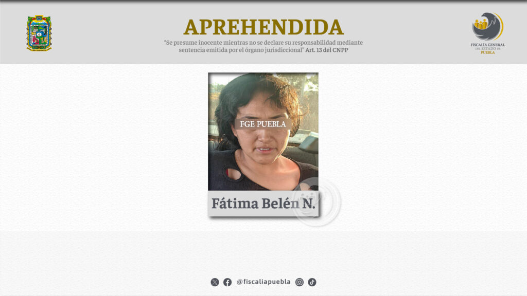 En el lugar la Fiscalía de Puebla cumplió orden de aprehensión contra Fátima Belén N. por el delito de evasión de presos, ya que presuntamente ayudó a su pareja sentimental a fugarse del penal.