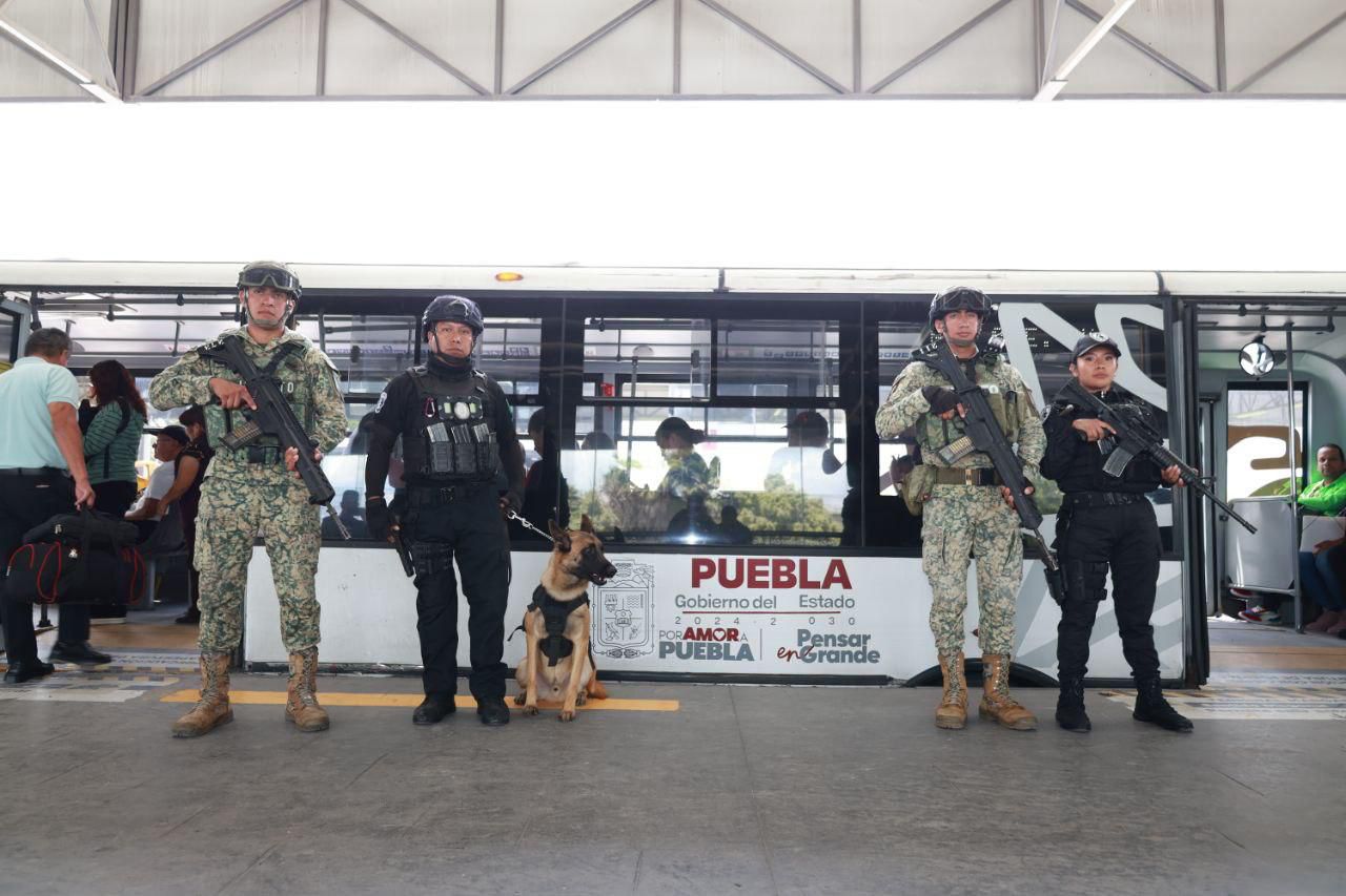 Asimismo, fueron efectuados operativos en la línea 3 de la Red Urbana de Transporte Articulado (RUTA) para inhibir la comisión de delitos, y en el centro penitenciario de Tecamachalco, donde se aseguraron equipos telefónicos, objetos punzocortantes y otros artículos prohibidos.