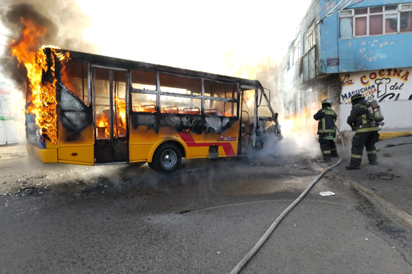 Una unidad del transporte público se incendio por completo en inmediaciones de Camino Real a Tlaxcala, San Jerónimo Caleras perteneciente al municipio de Puebla.