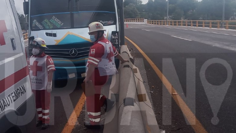 Un microbús de ATAH se impactó contra el muro de contención de la carretera Apizaco-Tlaxcala y un auto con placas de Puebla volcó sobre la México-Veracruz