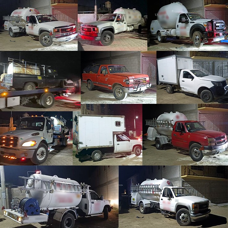 Los trabajos fueron realizados en predios ubicados en Santiago Coltzingo, junta auxiliar de Santa Rita Tlahuapan, donde se localizaron las pipas de diferentes marcas y capacidades, adaptadas para el trasiego de gas LP.