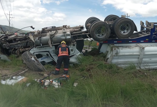 Según testigos, la camioneta RAM color rojo, era conducida a exceso de velocidad y sin precaución, por lo que al rebasar se impactó contra el tráiler que viajaba con sentido a Amozoc. El chófer del vehículo de carga, por el impacto, perdió el control de la unidad y terminó volcando completamente.