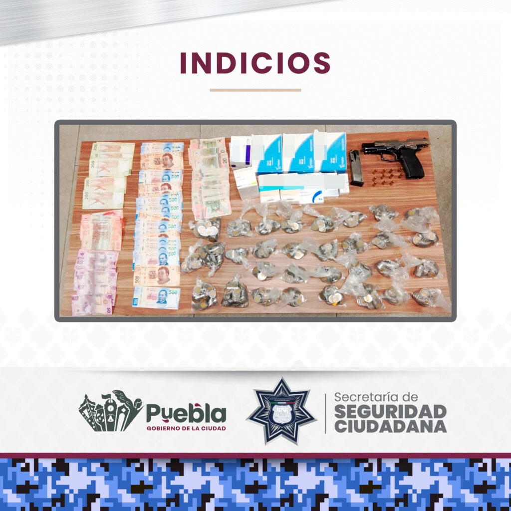 Además, se recuperó dinero en efectivo en monedas y billetes de diferentes denominaciones, así como algunos medicamentos y mercancía; también se aseguró un arma de fuego y 10 cartuchos útiles.