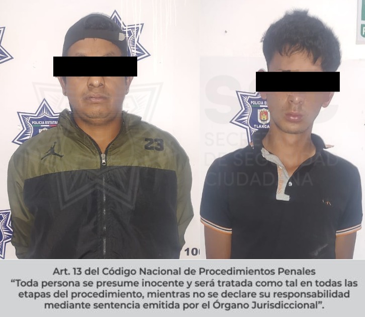 Siendo un hecho probable de delictivo, el conductor y copiloto identificados como Noé N. y Erik N., de 32 y 18 años de edad, respectivamente, fueron detenidos conforme a los derechos que les asisten.