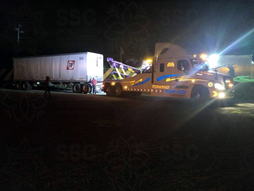 Resultado del trabajo coordinado entre la Secretaría de Seguridad Ciudadana (SSC) Tlaxcala y el Centro de Control, Comando, Comunicaciones, Cómputo, Coordinación e Inteligencia (C5i), se recuperó un tractocamión, dos cajas secas y un Dolly con reporte de robo y cargado aún con mercancía, en el municipio de Xaltocan.