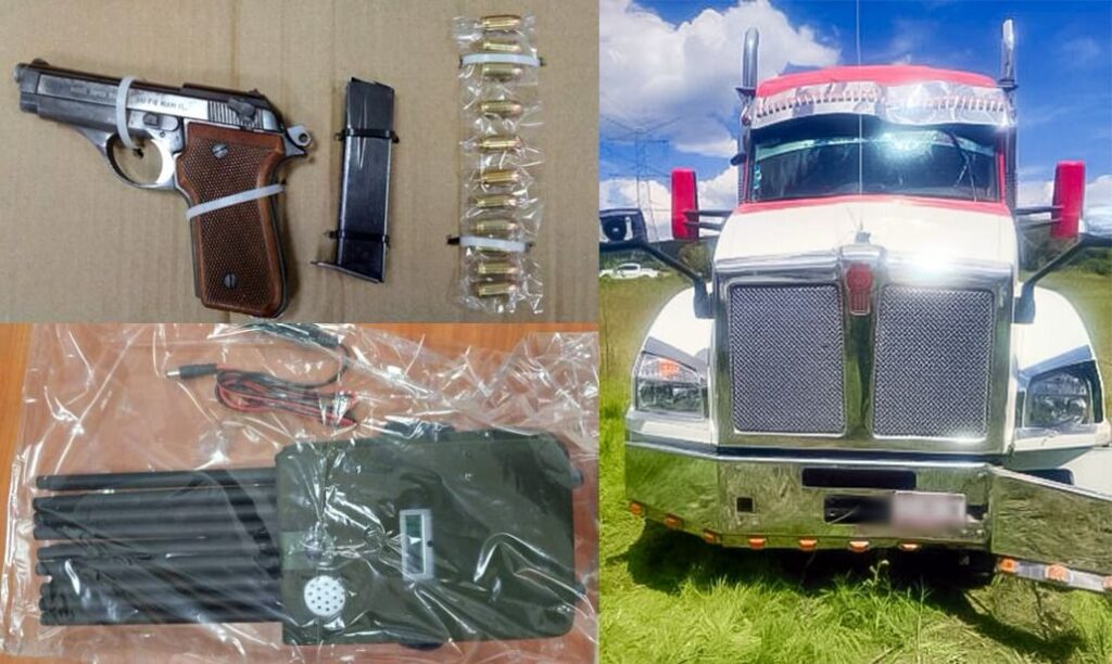 Durante esta intervención elementos de la SSP se aseguraron un arma, cartuchos y un inhibidor de señal, además de un tractocamión marca Kenworth, color blanco con rojo.