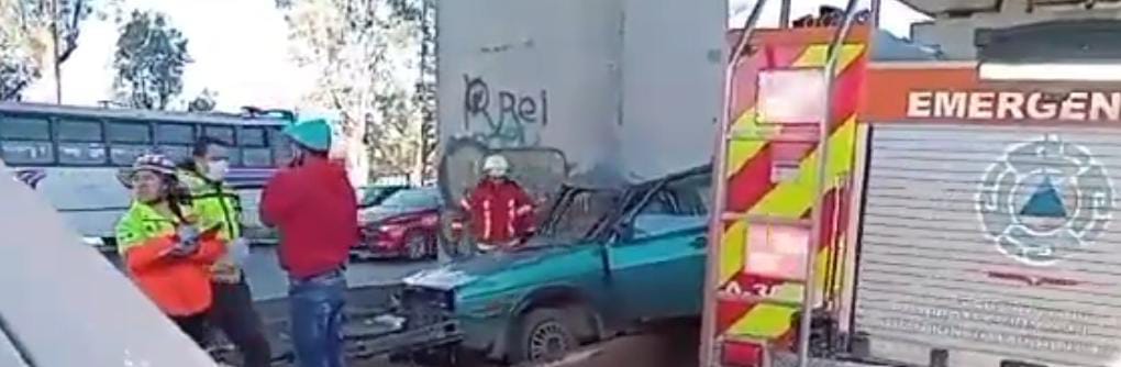 La persona que falleció quedó prensada al interior de la unidad modelo Jetta, versión antigua.