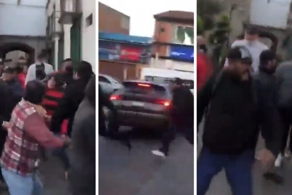 A golpes, macanazos y empujones, un grupo de al menos 20 encapuchados, hombres y mujeres, arribaron a la explanada de Zacatelco para disolver la manifestación que esta mañana de martes estaba conformándose.