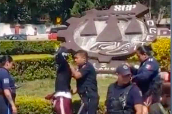 Este viernes, un día después del operativo policíaco en la institución educativa, se difundió en redes sociales cómo se efectuó la revisión al menor de edad que fue señalado de tener el arma.