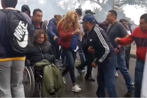 En las imágenes se puede apreciar que, el uso de estos químicos se hizo sin importar que habían personas de la tercera edad y en silla de ruedas.