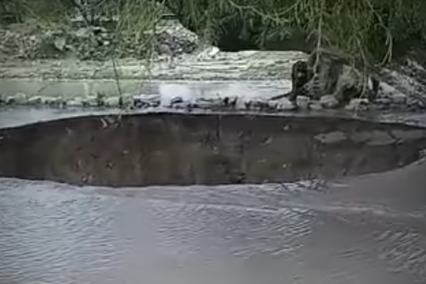 Vecinos reportaron el hundimiento de la tierra que formó un agujero de aproximadamente dos metros de radio, el cual temen siga creciendo en las próximas horas.