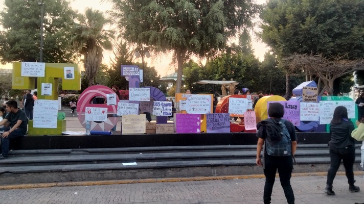 Una vez quitada la valla, colocaron carteles, lonas, un tendedero de denuncias y se dejó el micrófono abierto para que mujeres denunciaran a sus agresores y contaran algunas experiencias.