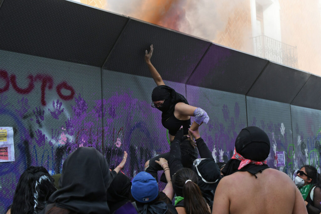 Por un momento el llamado ´bloque negro´ de casi 50  mujeres intentó derribar los muros de metal con martillos, patadas, piedras y dos postes de luz que derribaron y ocuparon como arietes; sin embargo, los muros, fijos en el concreto, no se movieron.
