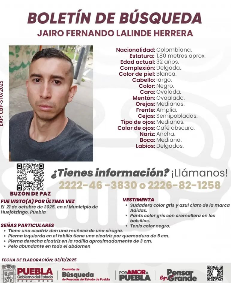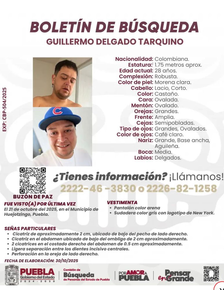 A través de videos y correos electrónicos la mujer contó que, desde el 21 de octubre, los dos jóvenes de origen colombiano fueron reportados como desaparecidos, derivado de ello, la Fiscalía General del Estado (FGE) de Puebla, así como la Comisión de Búsqueda de Personas Desaparecida emitió boletines para ayudar a la localización.