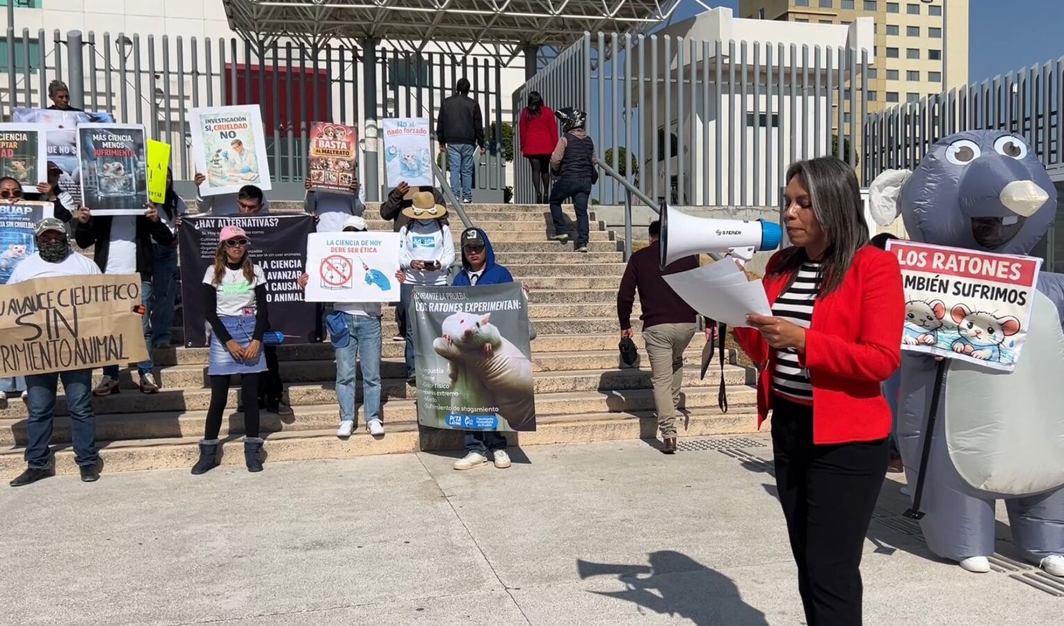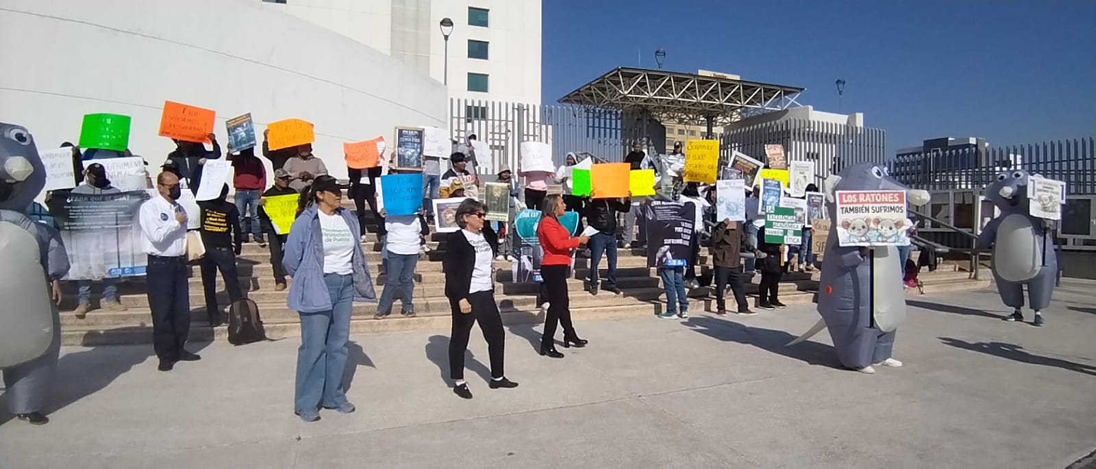 Al grito de “¡Amparo urgente, suspensión permanente”, integrantes del Movimiento Animalista de Puebla y de PETA Latino realizaron una movilización en la sede del Poder Judicial de la Federación para comunicar los avances respecto al amparo que promovieron para frenar las pruebas de laboratorios con ratones en universidades públicas.