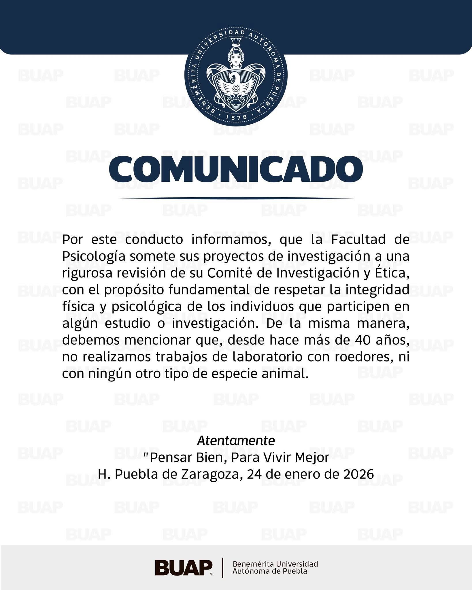 Agregaron que tuvieron un diálogo con autoridades de la BUAP, en el que les expresaron que la prueba con ratones o ratas ya es una técnica obsoleta desde hace 40 años, que distintas empresas farmacéuticas ya no utilizan en la actualidad.