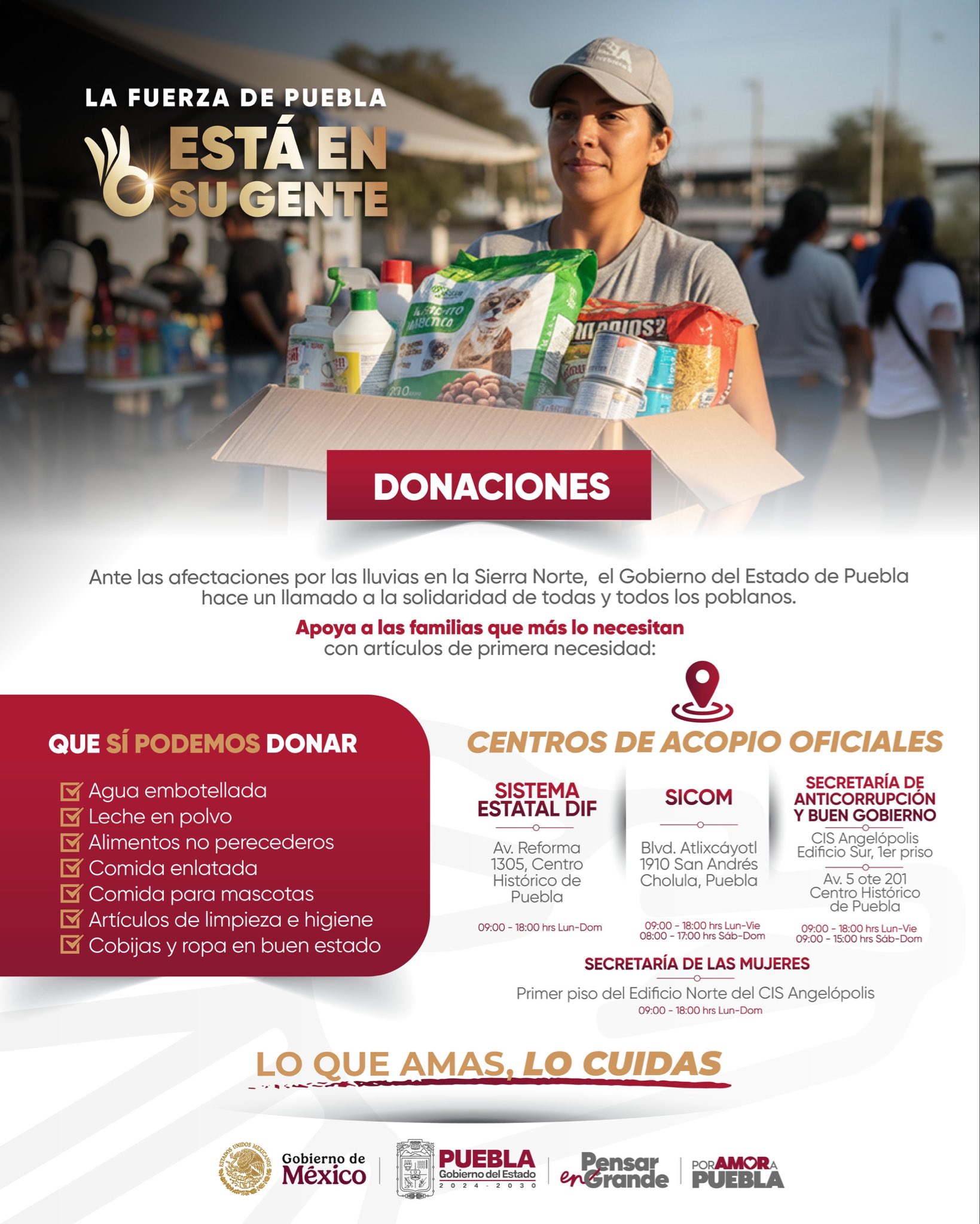 Las familias de la Sierra Norte necesitan de nosotros.📦 Lleva tu donativo al centro de acopio más cercano y demuestra que Puebla siempre responde con el corazón.