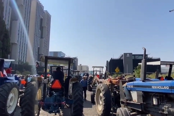 Decenas de campesinos, con todo y tractores, provenientes de municipios de la zona norte del estado de Puebla protestaron frente a las oficinas del SAT para exigir el pago del IEPS del Diésel.