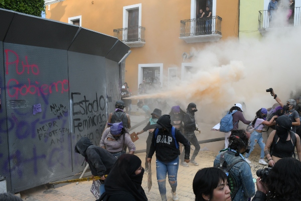 Sin embargo, en un comunicado, la CEDH no menciona el uso de un auto antimotín, la tarde de ayer, para dispersar con chorros de agua a las mujeres que integran el llamado “bloque negro” ni el uso de gas lacrimógeno en al menos dos ocasiones.