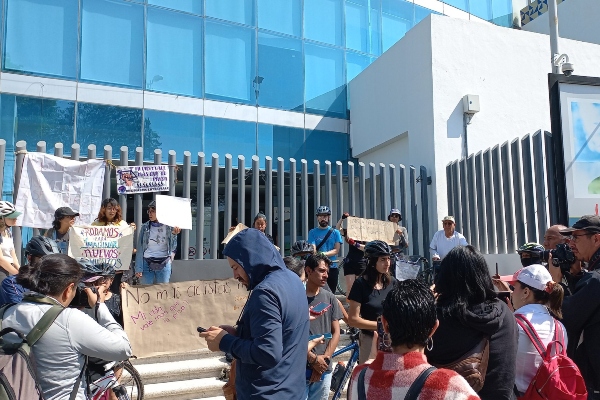 Ciclistas se manifestaron en la Fiscalía General del Estado (FGE) Puebla para exigir a las autoridades mayor seguridad y castigo ejemplar para el conductor que atropelló y mató a Agustín Medina, un joven de 16 años que circulaba en la Vía Recreativa de la Recta Cholula el día de ayer.