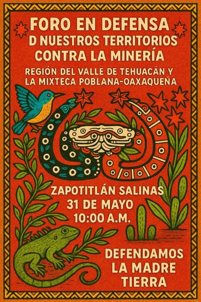 Con la finalidad de diseñar una serie de acciones contra la extracción de recursos minerales en la región del Valle de Tehuacán y en la Mixteca poblana-oaxaqueña, el próximo 31 de mayo se realizará el foro “En defensa de nuestros territorios contra la minería”, en el municipío de Zapotitlán Salinas