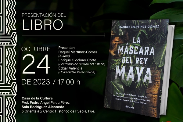 En la Casa de la Cultura “Profesor Pedro Ángel Palou Pérez”, el gobierno presente de Sergio Salomón, a través de la Secretaría de Cultura, llevará a cabo la presentación del libro “La máscara del rey maya”, escrito por Raquel Martínez-Gómez, maestra en Literatura Moderna y Contemporánea, Cultura y Pensamiento por la Universidad de Sussex, Inglaterra.