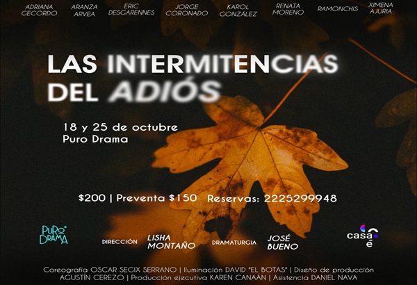 A partir de este 18 de octubre, el foro escénico Puro Drama será sede de “Las intermitencias del adiós“, obra inédita hecha por poblanas y poblanas, que tiene como tema central el duelo.