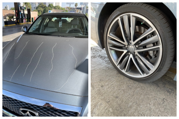 Cabe decir que, en el vídeo, se aprecia como uno de los sujetos toma foto del coche y la envía por el celular como para confirmar si es el auto. Mientras el otro sujeto empieza a rayar el automóvil.