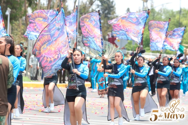 Después de dos horas de retraso poblanos y turistas disfrutaron del desfile Cívico-Militar del 5 de mayo. El evento contó con la participación de 12 mil 750 niños y adultos pertenecientes a 35 instituciones educativas, 76 vehículos, 256 caballos, 70 charros y 15 carros alegóricos.