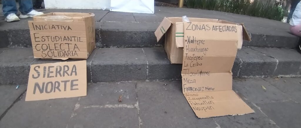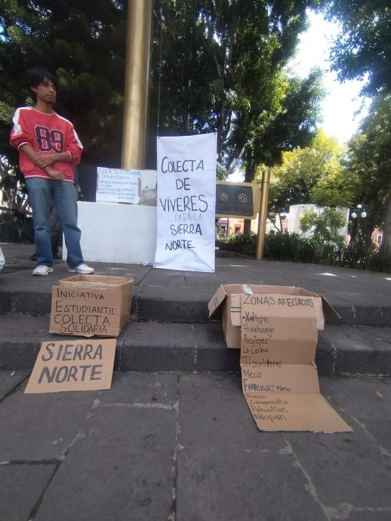 “Somos varios estudiantes que estamos organizando una colecta de víveres para apoyar a las comunidades de la Sierra Norte. Yo soy precisamente de Huauchinango y tenemos una compañera que es de Pantepec”, declaró.