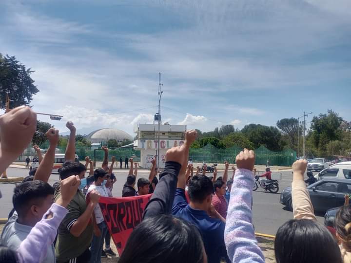 Estudiantes de la Normal Rural de Panotla “Benito Juárez” realizaron un mitin en memoria de Beatriz N, estudiante normalista de 21 años que murió durante la represión del 20 de octubre de 2022 que encabezaron los secretarios de Seguridad y Educación Pública del estado.