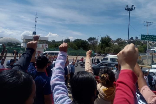 En la rotonda conocida como El Trébol, que conecta a la ciudad de Tlaxcala con San Martín Texmelucan y Apizaco, medio centenar de normalistas recordaron los hechos de octubre del año pasado, el hostigamiento institucional y mediático que culminó con la represión policiaca del 20 de octubre.