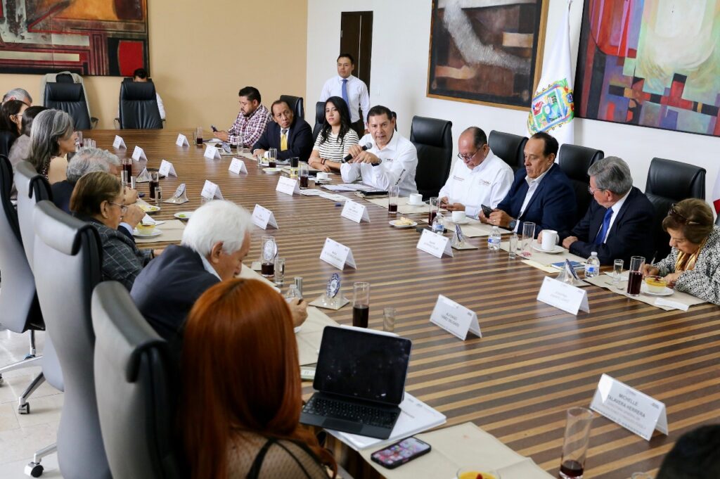 En la reunión estuvieron Samuel Aguilar Pala, Secretario de Gobernación; José Tomé Cabrera, Coordinador General de Comunicación Social; José Manuel Martínez Armenta, Subcoordinador de Comunicación Social; Natali Hoyos López, Directora de SICOM; Anette Michelle Talavera Herrera, Directora Ejecutiva de Convenciones y Parques y Alejandro Espidio Reyes, Secretario Anticorrupción y Buen Gobierno.