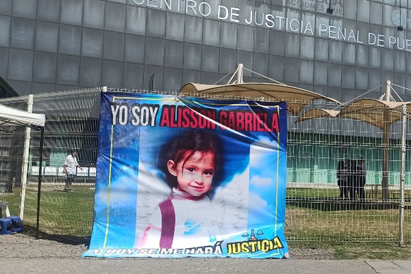 Familiares de la niña Alisson Gabriela, víctima de feminicidio en 2020, protestaron este jueves en la Casa de Justicia Penal de Puebla para exigir que se dicte sentencia máxima contra los dos responsables de este crimen: Daniela N., la madre y Víctor N., el padrastro.