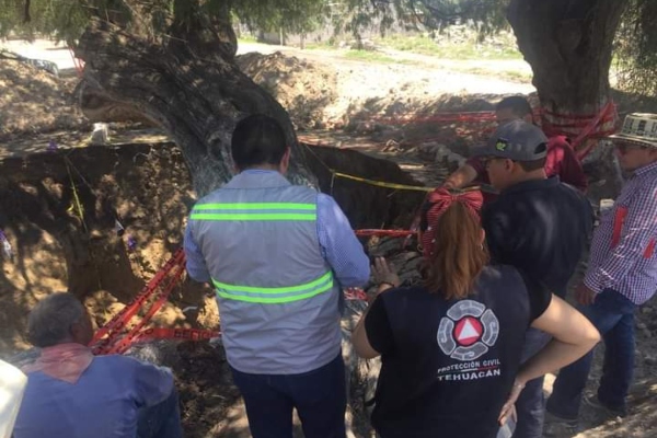 De acuerdo con la información proporcionada por el gobierno de Tehuacán, después de la inspección de la Conagua, se determinó que dicho socavón se encuentra en la trayectoria de la galería de agua de la Sociedad Conservadora del Acueducto de Aguas El Huizache S. C.