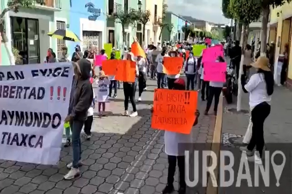 Habitantes de la comunidad de San Pedro Tlalcuapan, del municipio de Chiautempan, marcharon hacia Palacio de Gobierno donde pedirán la liberación de Saúl Rosales y Raymundo Cahuantzi, presidente de comunidad y tiaxca, respectivamente, acusados por la PGJE del linchamientos de un hombre el pasado 15 de abril de 2022.