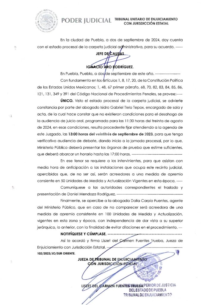 Ya son 5 veces que me difieren la audiencia, la última fue el 23 de septiembre la jueza dijo que se declaraba incompetente, ya fui a Derechos Humanos en Puebla al Consejo de Judicatura y nadie contesta”.