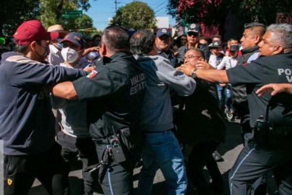 En los accesos, después de que se cerraron, los burócratas golpearon las puertas para que les permitieran el paso; sin embargo, además de que los accesos permanecieron bloqueados, un grupo de policías estatales, superados en número, intentaron replegarlos.