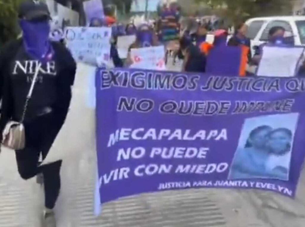 La movilización comenzó alrededor de la 10 de la mañana concentrando a decenas de mujeres de distintas edades, quienes también mostraron consignas como “Mecapalapa no puede vivir con miedo” y “Hoy no están todas nuestras voces, porque desde la tumba no se puede gritar”.
