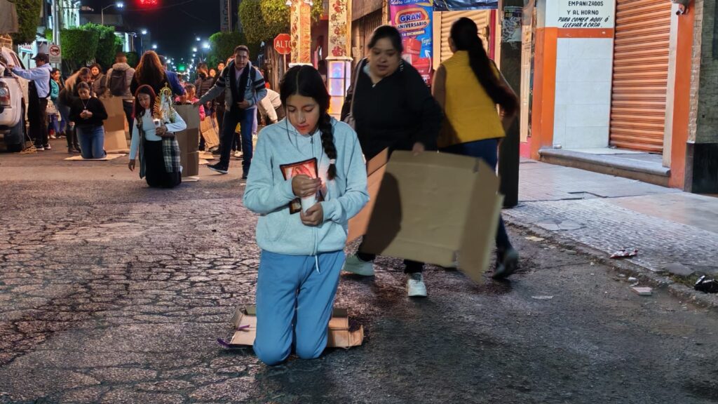Las actividades iniciaron desde horas previas al 12 de diciembre, destacando el arranque de los tradicionales recorridos de “Los Hincados”, una de las expresiones de fe más representativas de la ciudad. Cientos de devotos cumplieron promesas avanzando hincados a lo largo de más de 800 metros, desde la 3 Sur hasta el Santuario de la Virgen de Guadalupe, en medio de rezos, silencio y acompañamiento de familiares.