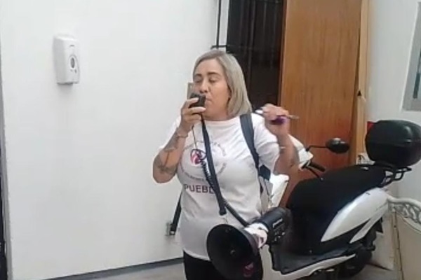 Con la finalidad de dar a conocer las presuntas amenazas que ha recibido por parte de Ángel Rivera Ortega, regidor capitalino del Partido del Trabajo (PT), Sheridan Balderas, presidenta del Frente Poblano contra deudores alimentarios, encabezó una patrulla feminista en Sala de Regidores, en la calle 4 Oriente del Centro Histórico.