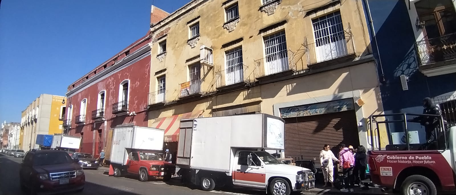 #Puebla 🚨 Con uso de la fuerza pública, desalojan vecindad ubicada en la calle 5 Poniente 336. Inquilinos dicen que solo llegaron los policías a sacarlos. Serían alrededor de 10 personas las afectadas. Personas que han acudido a apoyar no tienen permiso de ingresar. pic.twitter.com/j7nIzjEtxR