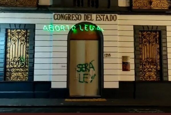 Previo a la conmemoración del Día Internacional de la Mujer la campaña Por el Aborto Legal en Puebla proyectó en los edificios como la Catedral, y que albergan al Congreso local, el Palacio Municipal y Casa Aguayo, sede de los Poderes del Estado el mensaje “Aborto Legal Puebla” con laser de color verde, distintivo de la lucha para la despenalización del aborto.