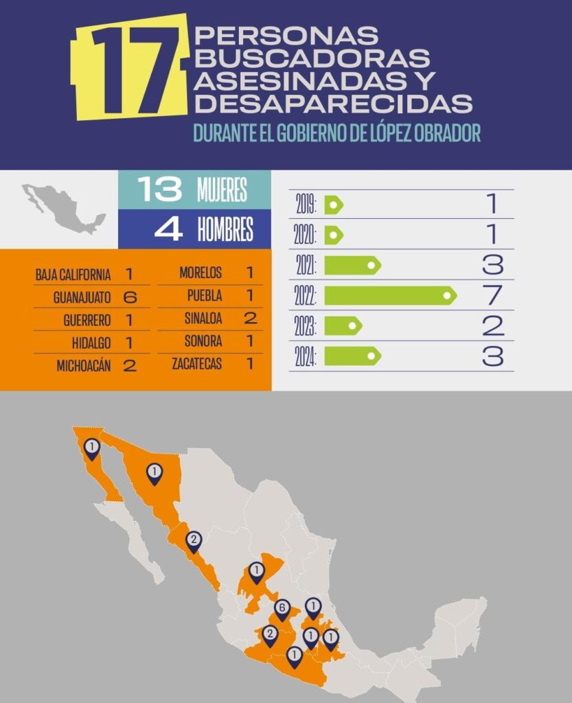 Durante los primeros 5 años y 4 meses del gobierno de Andrés Manuel López Obrador, Puebla se ubicó entre los 10 estados del país en los que se registraron asesinatos o extravíos de grupos de personas buscadoras de víctimas de desaparición.