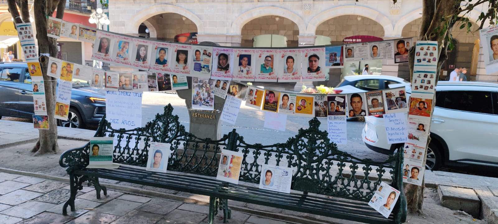 A 10 años de la desaparición de Michell Jiménez Toxtle, originario de San Andrés Cholula, su familia y el colectivo Voz de los Desaparecidos instalaron un tendedero en el Zócalo de Puebla, en el Árbol de la Esperanza, para visibilizar varias de las fotografías y proyecciones del joven.