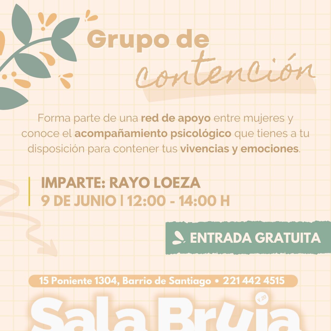 ¿Qué es y qué no es el feminismo? se realizará el próximo 7 de junio y el grupo de Contención el 9 de junio, ambos de 12 de la mañana a dos de la tarde. Para más información puedes llamar al 221 442 4515.